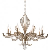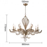 ユリの紋章のようなデザインのフレームに、クリスタルをあしらったおしゃれなアンティーク調シャンデリアです。