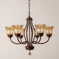 アメリカンテイストのアンティーク調ガラスシェードシャンデリアです。