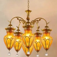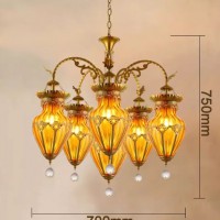 スチール製の本体に、オレンジ色のボヘミアガラスで作られたシェードがステキなアンティーク調シャンデリアです。