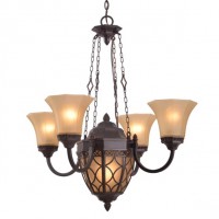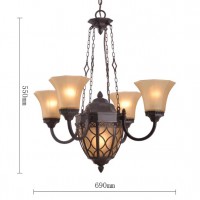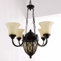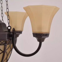 スチールのシェードとガラスシェードの2種類のシェードが珍しいアンティーク調シャンデリアです。