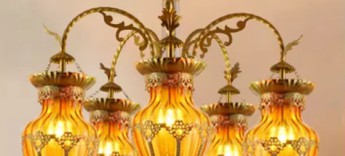 スチール製の本体をアンティーク調に塗装を施したガラスシェードのシャンデリアです。