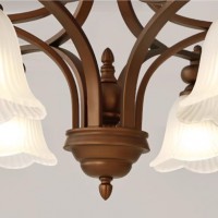 アメリカンテイストのシンプルなアンティーク調ガラスシェードシャンデリアです。下向きのシェードの模様はどこかレトロな雰囲気がして、目新しさを感じます。
