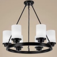 スチール製の本体をアンティーク調に塗装を施したガラスシェードのシャンデリアです。