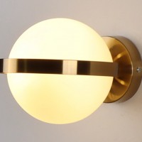 乳白色のガラスシェードとゴールドに塗装したフレームのデザインがモダンな北欧テイストのブラケットライトです。