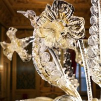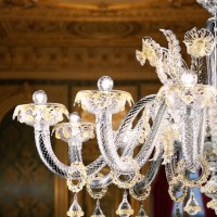イタリアンテイストの手作りガラスがきれいなキャンドルクリスタルシャンデリアです。